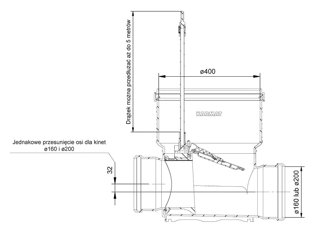 Kineta przelotowa 400/125 z zasuwą burzową do rury trzonowej gładkiej Karmat