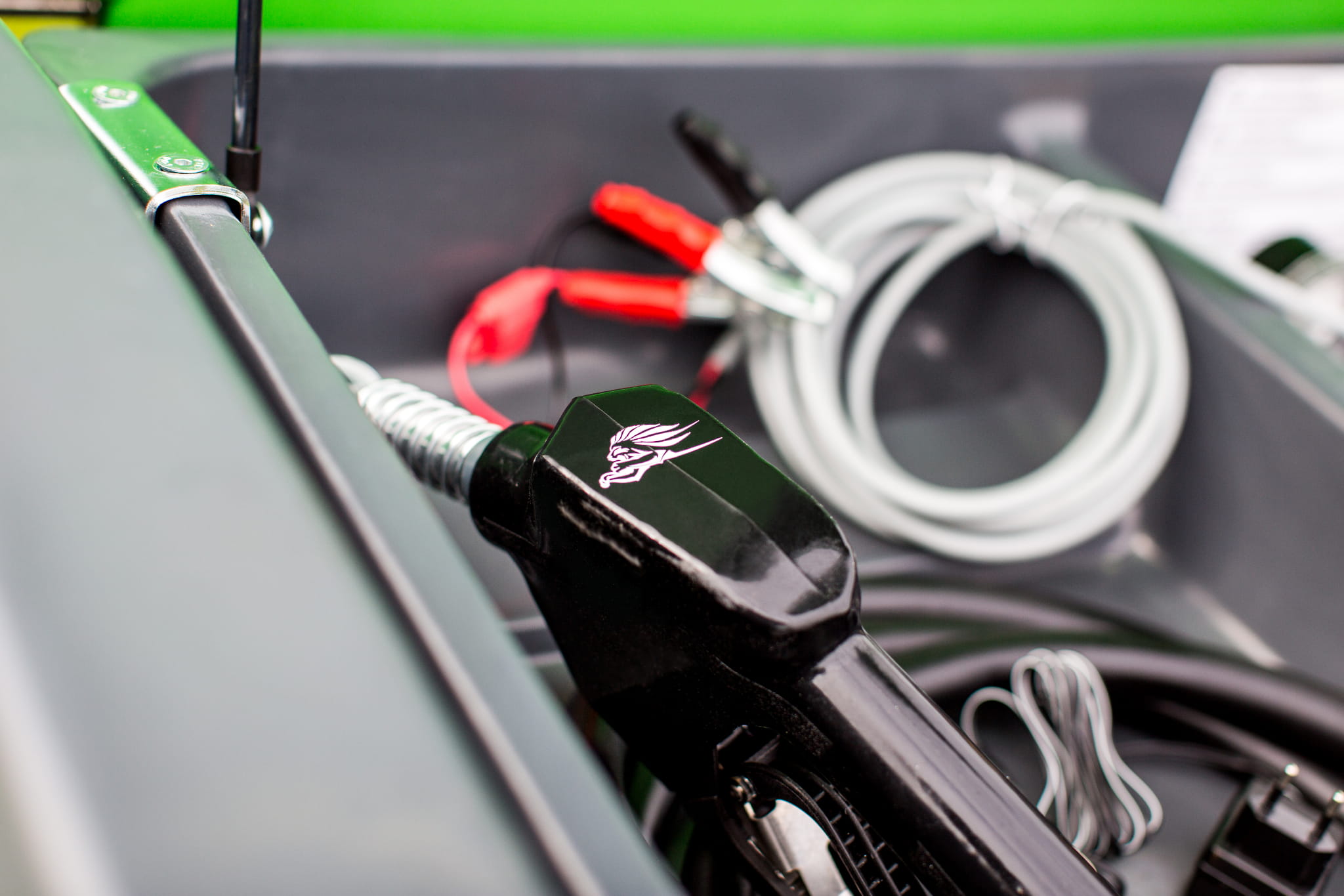 Dodatkowo, akcesoria umieszczone w specjalnie zaprojektowanej wnęce zapobiegają wyciekowi oleju na zewnątrz zbiornika, co przekłada się na czystość i bezpieczeństwo podczas operacji tankowania.