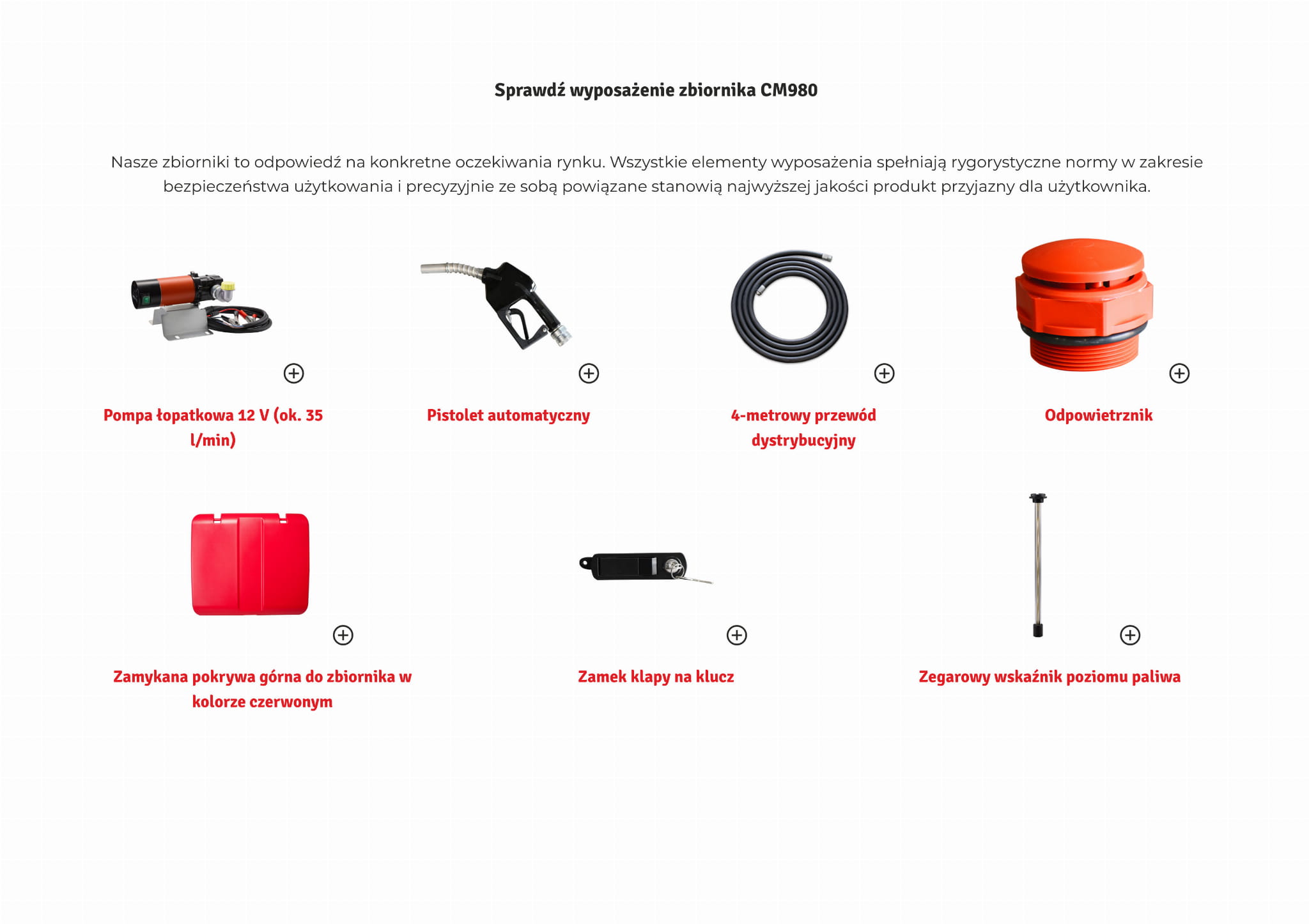 Wyposażenie zbiornika SIBUSO CM980 BASIC: