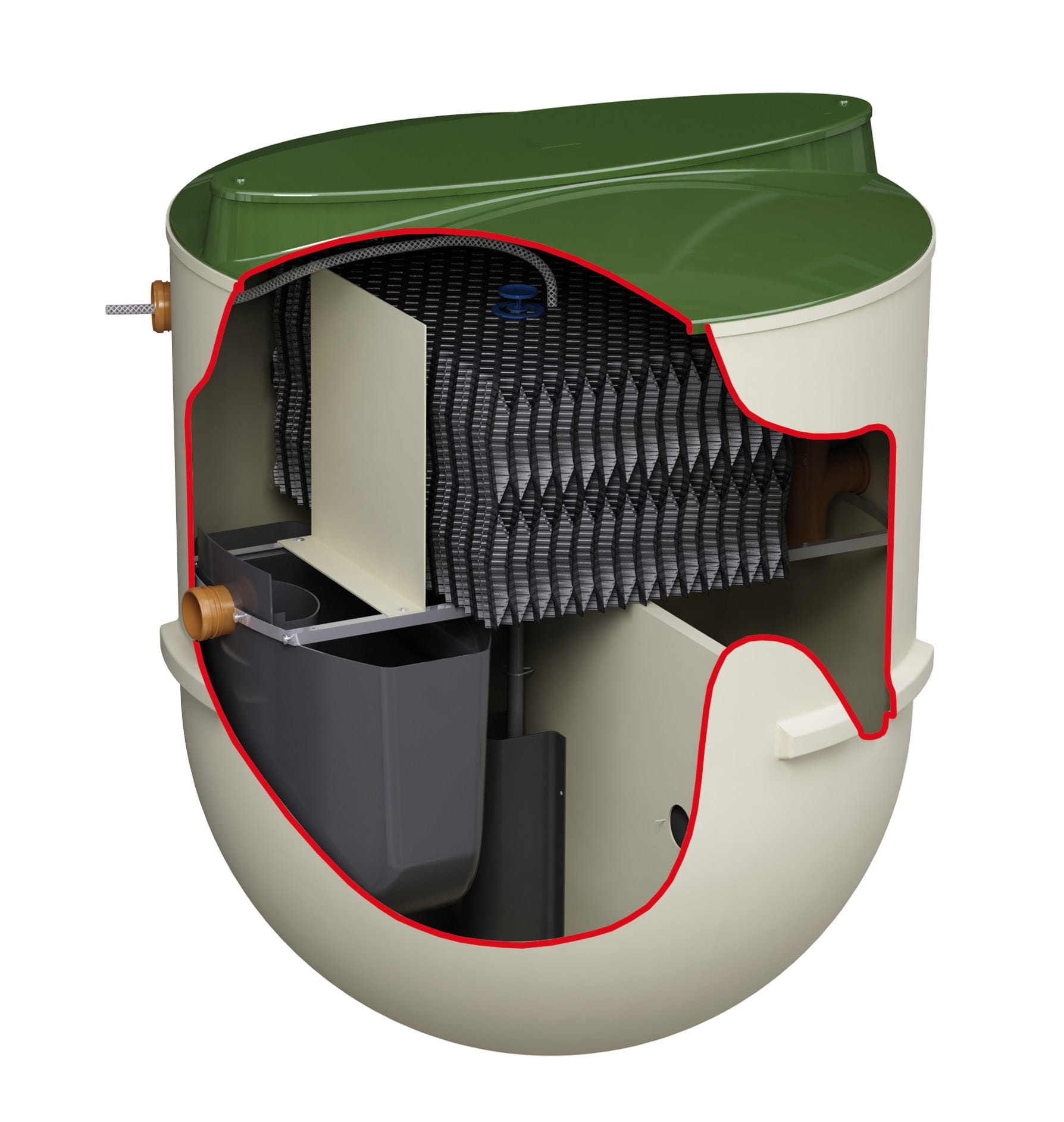 Oczyszczalnie BioTec® spełniają wymogi normy EN 12566-3:2005+A2:2013, co umożliwia odprowadzenie oczyszczonego ścieku do gruntu lub wód powierzchniowych po uzyskaniu odpowiednich pozwoleń. Zbiornik wykonany z włókna szklanego wzmocnionego żywicą (GRP) ułatwia instalację i redukuje koszty robót ziemnych.