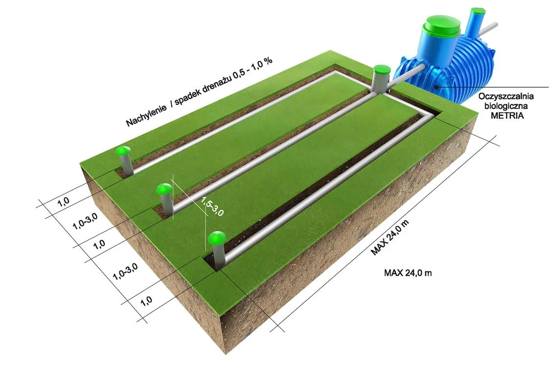 Oczyszczone medium można odprowadzać do rowu melioracyjnego, co zwiększa zalety systemu Soft SBR.