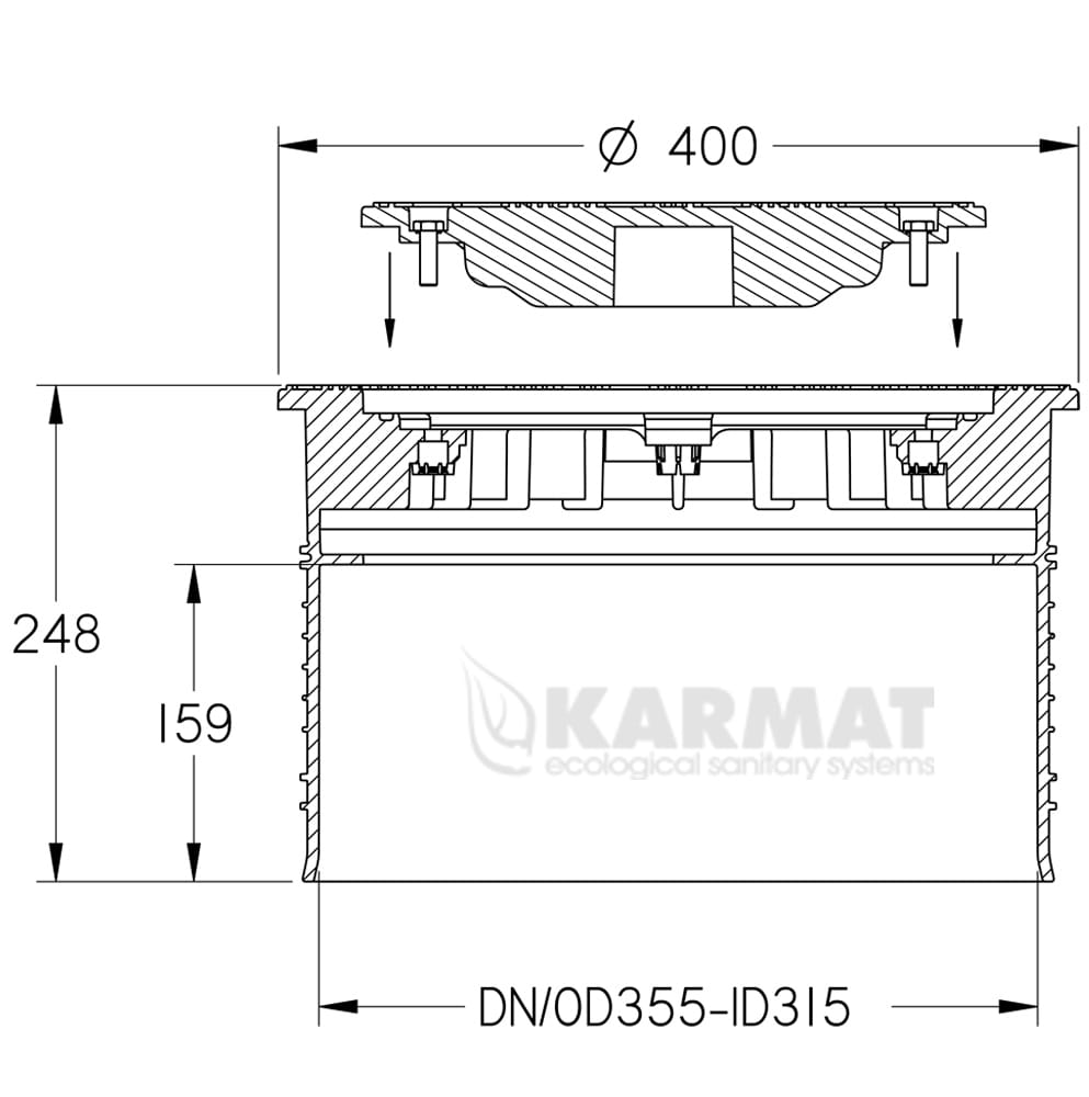 Pokrywa szczelna PP do rury karbowanej ø 355 pełna 3T Karmat