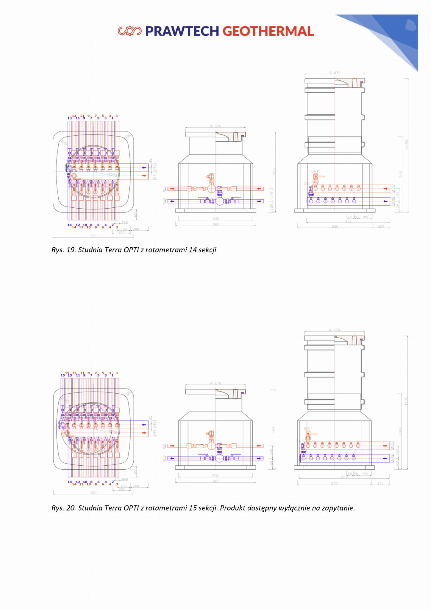 Seria studni rozdzielaczowych PRAWTECH TERRA R oraz Z stanowi jeden z najważniejszy element dolnych źródeł ciepła systemu geotermalnego. Studnie TERRA składają się z wbudowanego na stałe rozdzielacza w komorze osłonowej z tworzywa. Komora została zaprojektowana taka aby chronić rozdzielacz przed naporem gruntu oraz zapewnić komfortowy dostęp do czynności serwisowych oraz regulacyjnych.