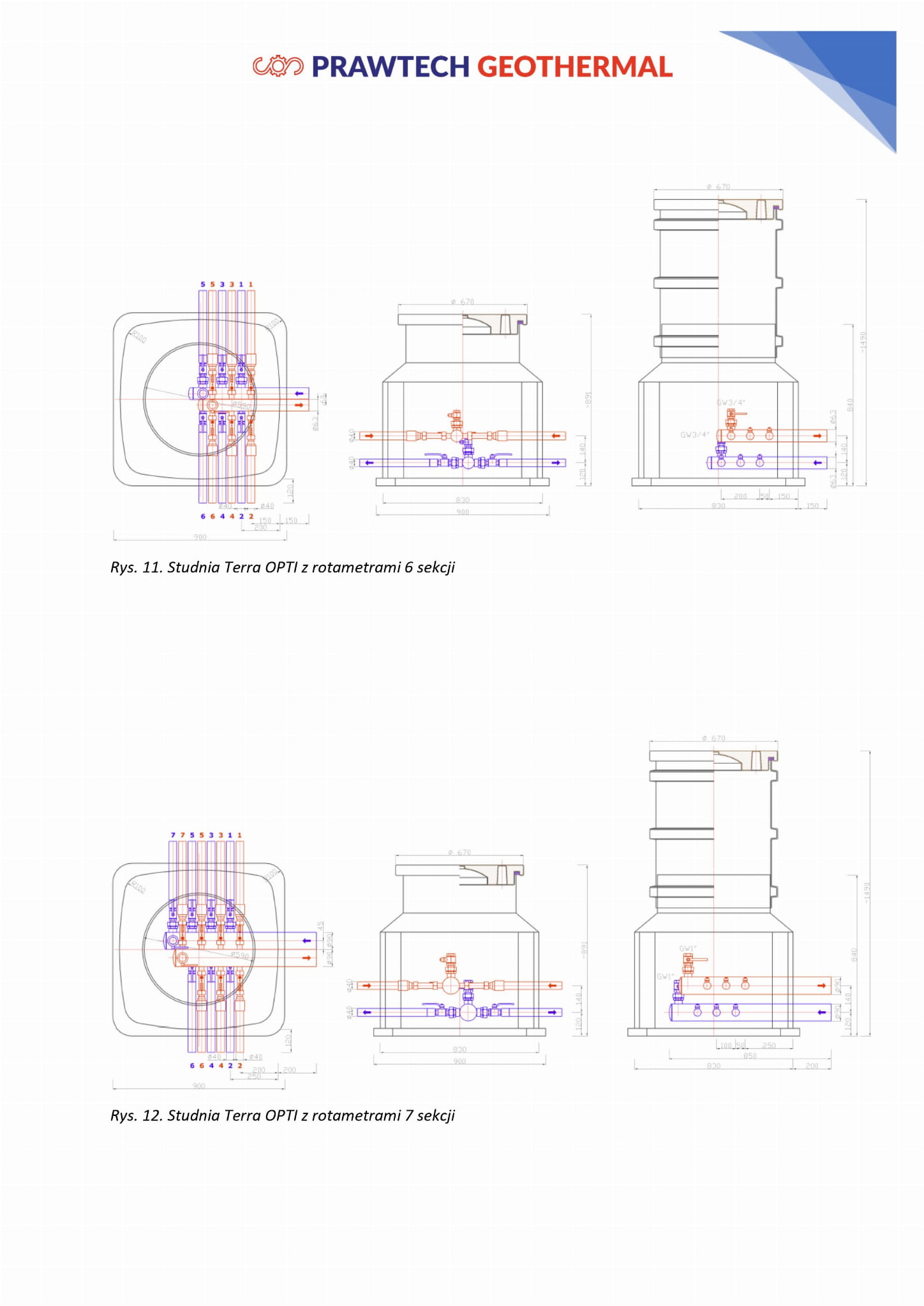 Seria studni rozdzielaczowych PRAWTECH TERRA R oraz Z stanowi jeden z najważniejszy element dolnych źródeł ciepła systemu geotermalnego. Studnie TERRA składają się z wbudowanego na stałe rozdzielacza w komorze osłonowej z tworzywa. Komora została zaprojektowana taka aby chronić rozdzielacz przed naporem gruntu oraz zapewnić komfortowy dostęp do czynności serwisowych oraz regulacyjnych.