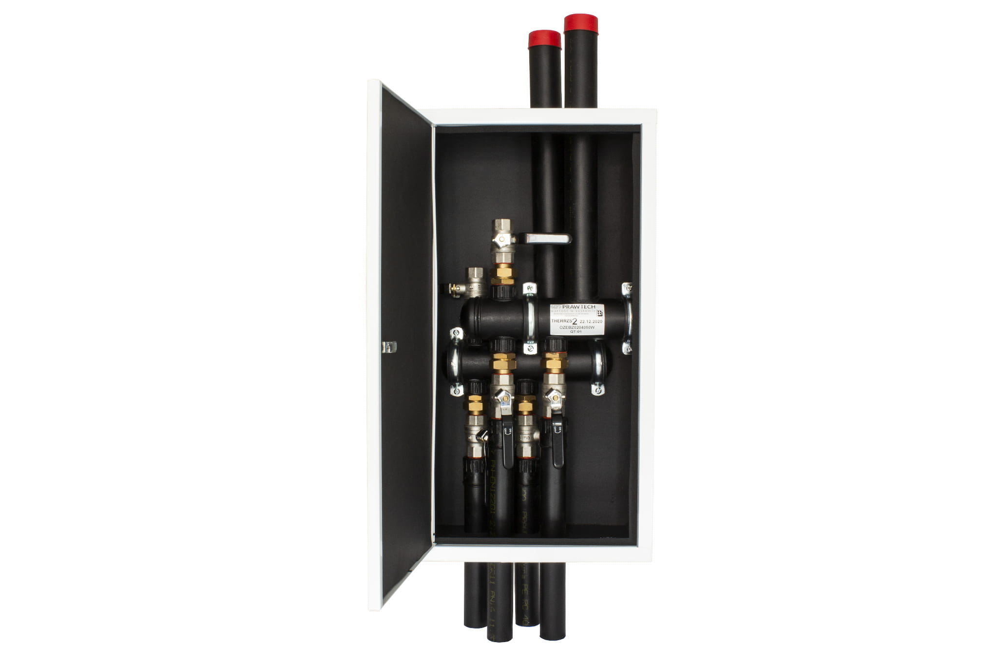 Rozdzielacz odpowiada za transport płynu niezamarzającego z pompy ciepła do gruntu i z powrotem do maszynowni pompy ciepła. Produkty przeznaczone do pracy z dowolnym płynem niezamarzającym.