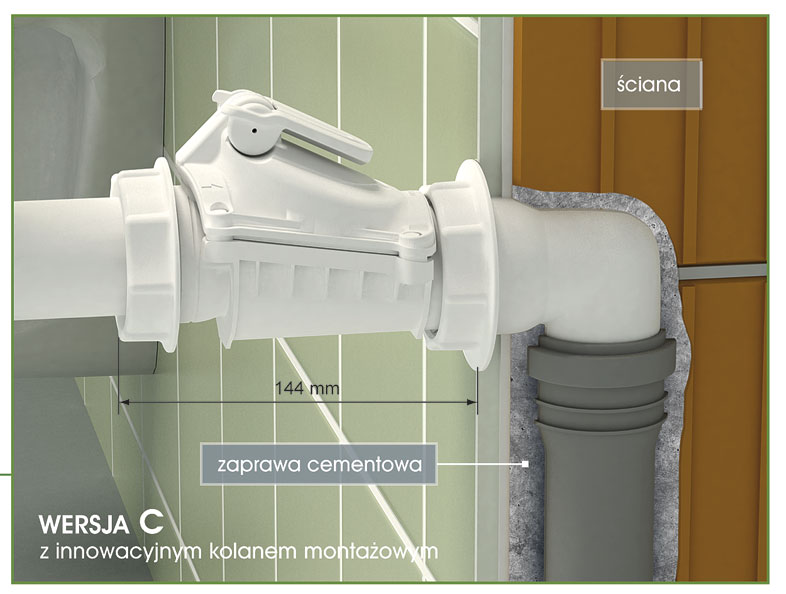 Zasuwy burzowe KARMAT wersja C to seria do rur ø 50 montowanych w nowych lub remontowanych instalacjach. Montowane do ściany za pośrednictwem kolana i przykręcana za pośrednictwem specjalnie zaprojektowanej nakrętki, która pełni również funkcję rozety. Ruchome kolano pozwala na łatwy montaż pod każdym kątem oraz zabezpiecza przed przepływem wstecznym. Zawory zwrotne KARMAT spełniają normę PN-EN 13564 oraz posiadają certyfikat znaku CE.