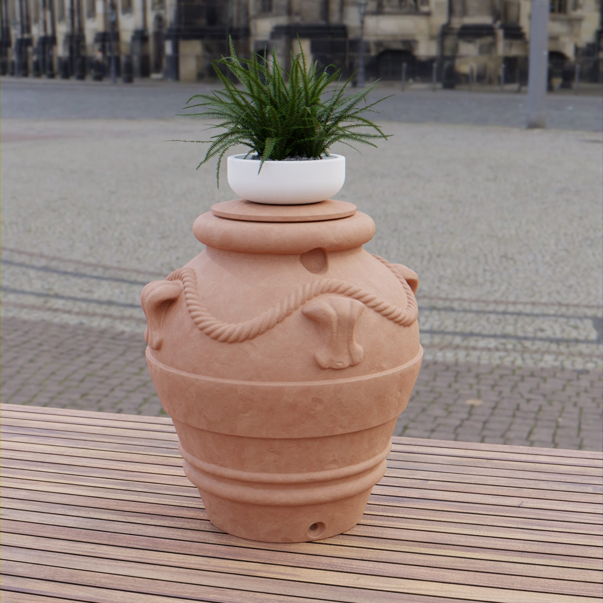 Zbiornik dekoracyjny na deszczówkę 1000 L Orciotto jasna cegła MPI zbiornik na wodę deszczową 1000 l