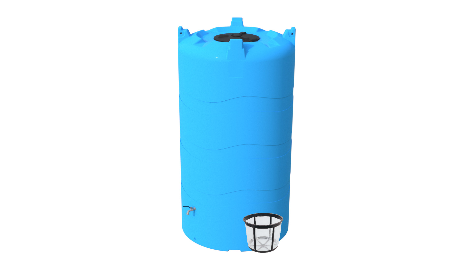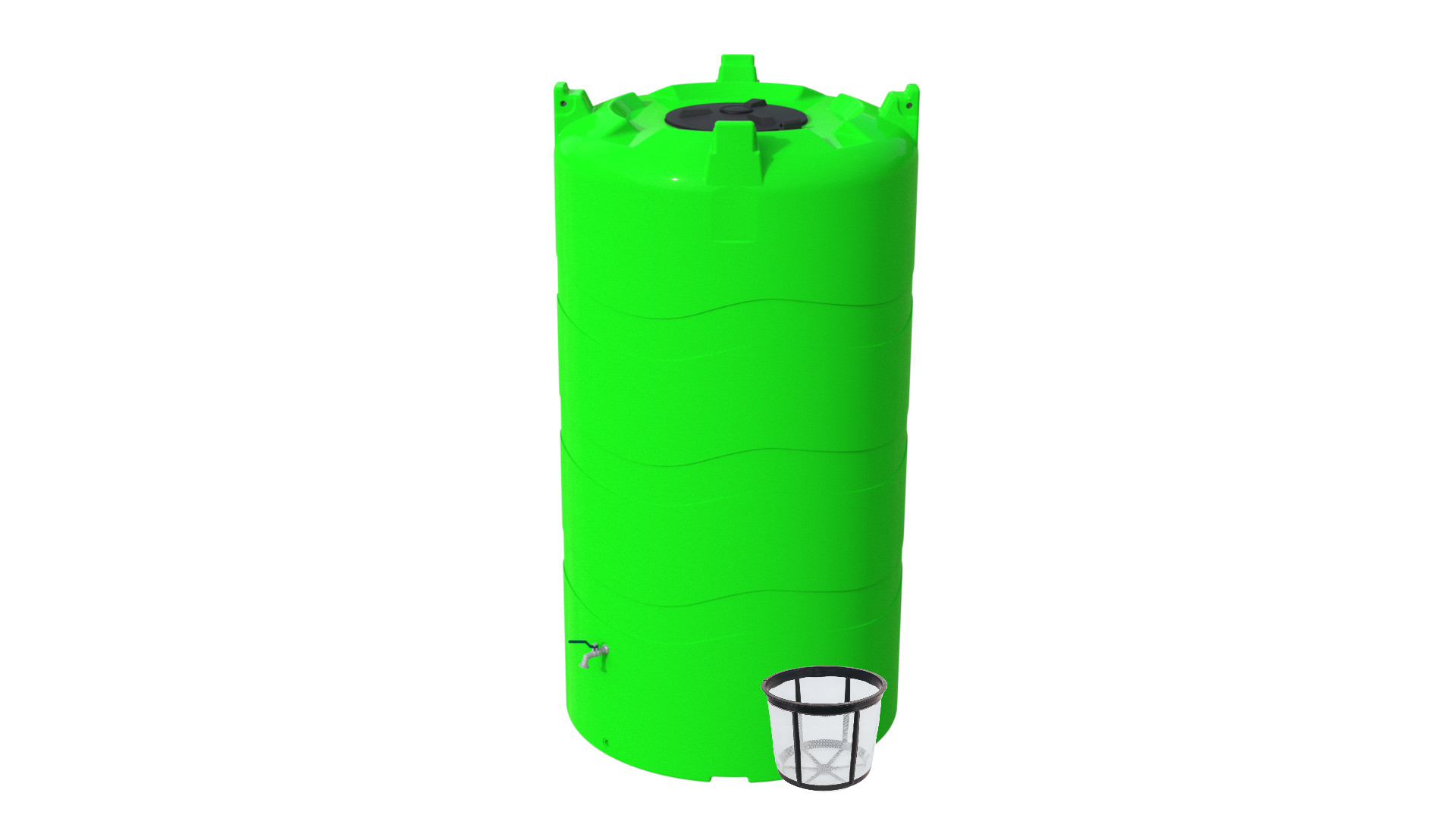 Zbiorniki są sprzedawane w komplecie z pokrywą, filtrem koszykowym, kranikiem oraz korkiem dolnego otworu spustowego.