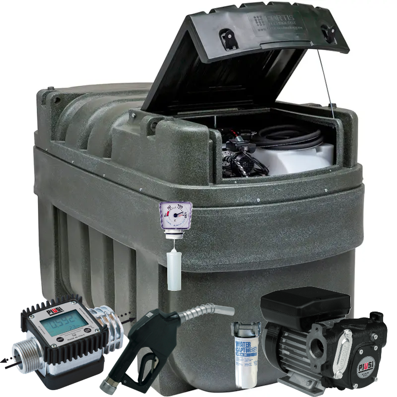 Dwupłaszczowe zbiorniki FOTRIS TANK AGR do magazynowania oraz dystrybucji oleju napędowego wykonane z najwyższej jakości tworzywa sztucznego odpornego na uszkodzenia mechaniczne, warunki atmosferyczne oraz promieniowanie UV. Idealne rozwiązanie dla firm oraz gospodarstw rolnych gdzie w trudnych warunkach są potrzebne duże ilości oleju napędowego. Zbiorniki AGR są wyposażone w najwyższej jakości układy dystrybucyjne włoskiego producenta PIUSI. Transparentna barwa zbiornika wewnętrznego pozwala na wizualną ocenę czystości paliwa.