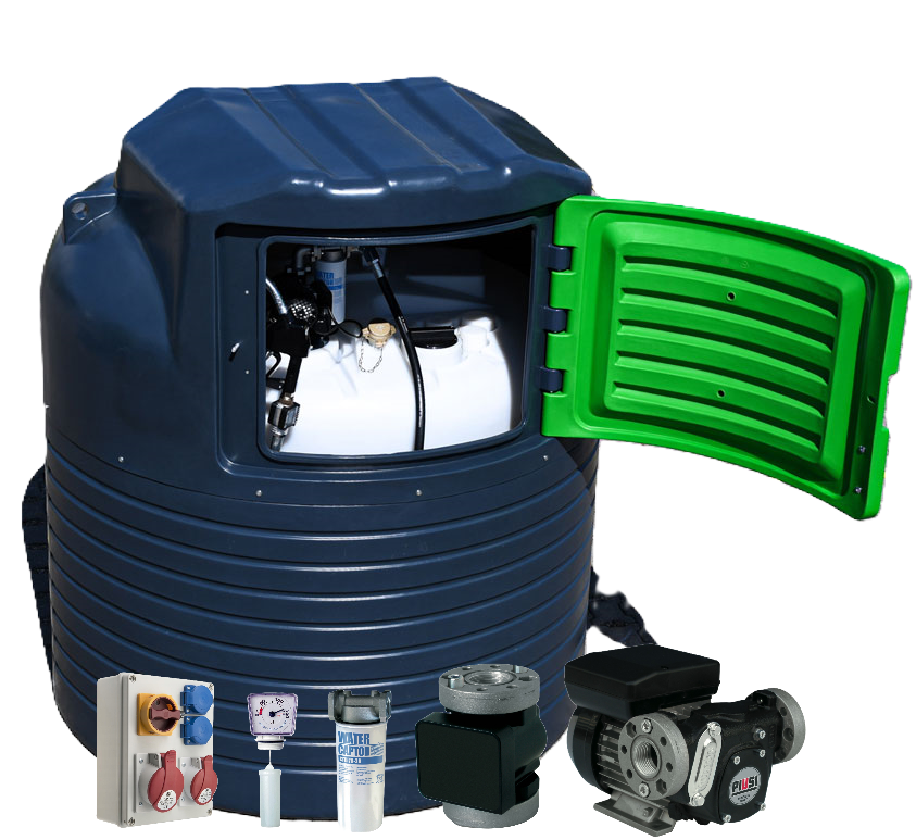 Dwupłaszczowy zbiornik na olej napędowy FORTIS ETK 2500 pompa 79 l/min. pulser K600, nalewak A60, gotowy do montażu terminala
