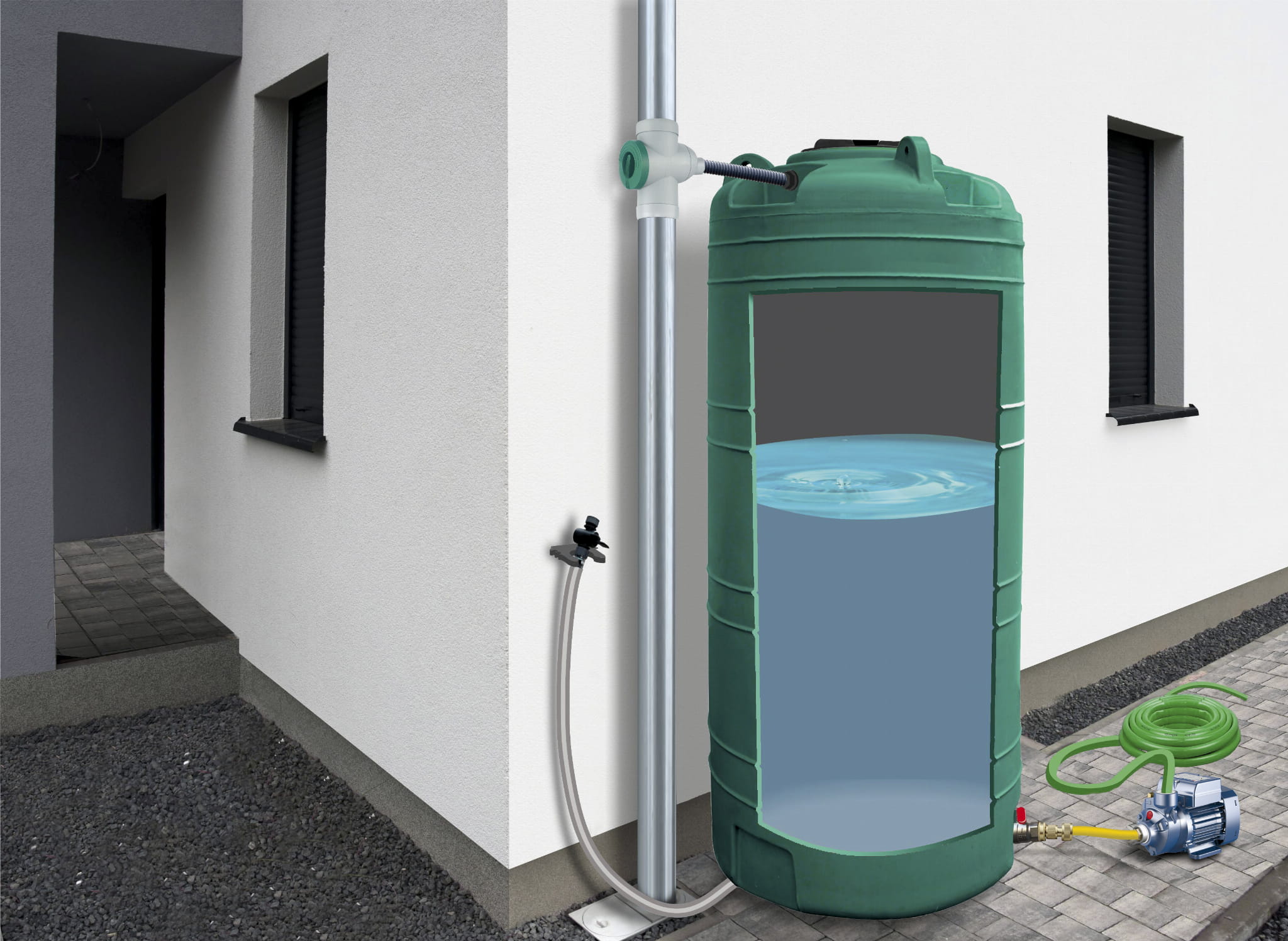 Zbiornik dekoracyjny na wodę deszczową Grande 2000 L zielony - w zestawie do podciśnieniowego poboru wody ze zbiornika