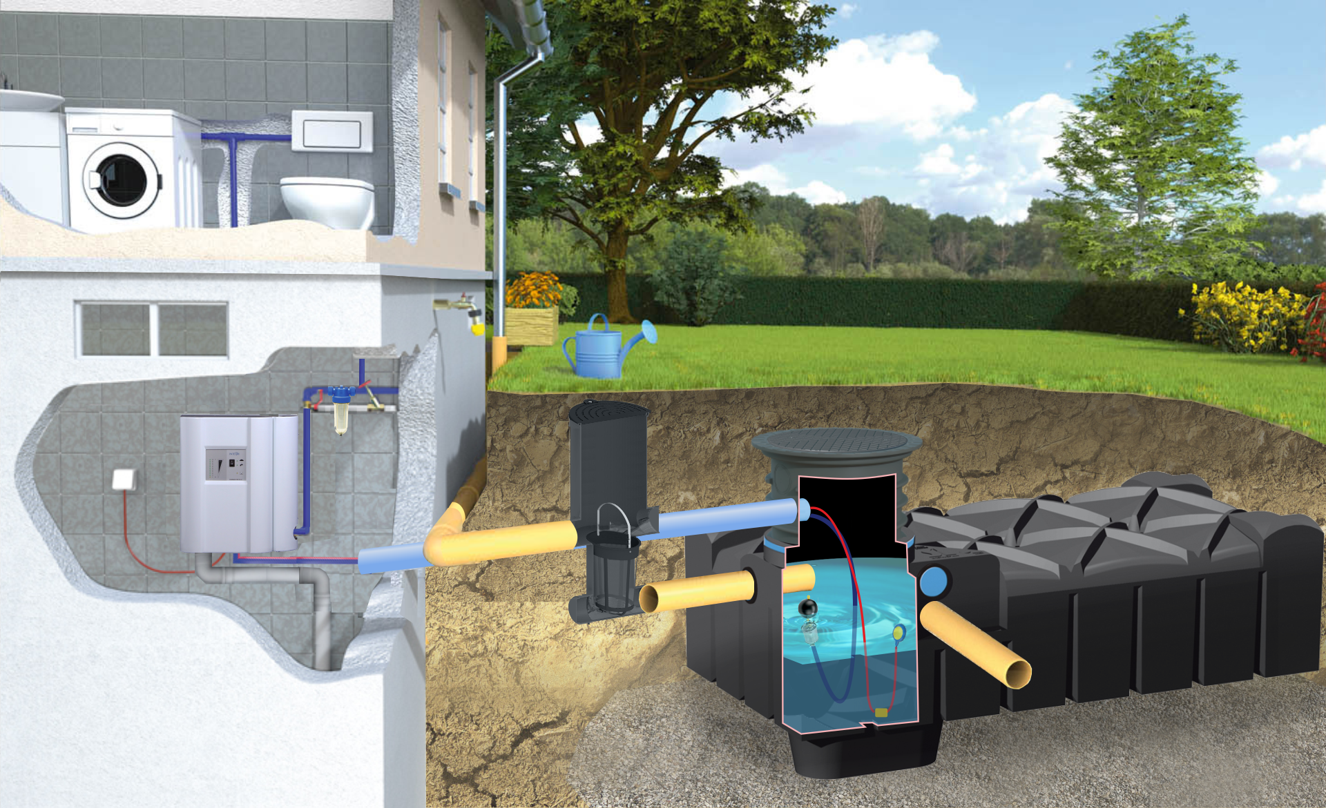 Systemy domowo-ogrodowe do deszczówki serii SMART ze zbiornikami MPI F-Line. Zbiornik jest wyposażony w rurę trzonową VS60, uszczelkę, filtr koszowy OPTI, pokrywę zbiornika TwinCover, centrala EcoRain 10 z pompą membranową. System posiada trzy poziomy filtracji co umożliwia użycie odzyskanej wody deszczowej w domu.